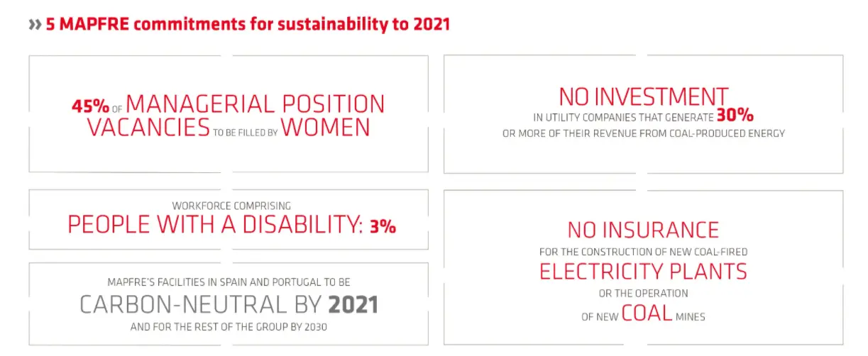 MAPFRE has established five sustainability commitments up to 2021: