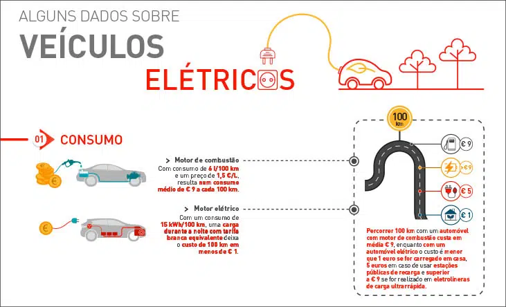 Uma das principais razões para escolher um carro elétrico é o custo mais baixo em comparação com um motor de combustão. Com este último, considerando um consumo médio de 6 l/100 km e um preço de 1,50 euros por litro, é possível calcular um consumo médio de 9 euros por 100 km.