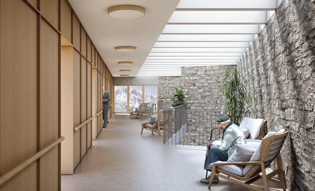 Luz, áreas verdes e uma alegria para os olhos. Por um lado, oferece uma nova solução arquitetônica. Os espaços devem permitir que as pessoas se ajustem facilmente quando um problema como este chegar; oferecer atenção individualizada, mas também coletiva; e isolar um paciente ou uma indústria inteira; fazer a rotação dos trabalhadores; e formar bolhas se a situação exigir. Também foi importante ter uma visão de Saúde, medicar, se necessário, oferecer alternativas para quem precisa se socializar e incorporar a voz de todos aqueles que cuidaram dos residentes neste momento. Essa parte, o social e a saúde, é o que temos de tratar agora, pois a proposta arquitetônica não foi bem-sucedida.
